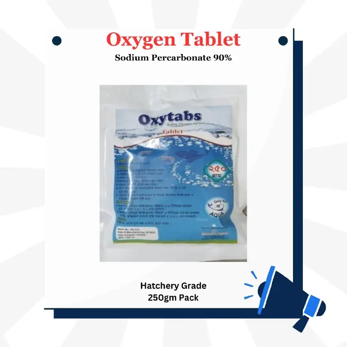 উচ্চমানের অক্সিজেন ট্যাবলেট যা মাছের চাষের পানিতে অক্সিজেনের পরিমাণ বৃদ্ধি করে। এটি একটি স্বাস্থ্যকর জলজ পরিবেশ নিশ্চিত করে এবং মাছের মৃত্যুহার কমায়।